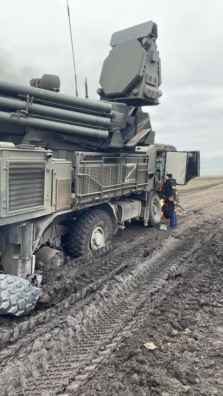 Russian Pantsir-S1 SHORAD abandoned by its crew and seized by Ukrainian forces.