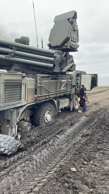 This is a thread that will explain the implied poor Russian Army truck maintenance practices based on this photo of a Pantsir-S1 wheeled gun-missile system's right rear pair of tires below & the operational implications during the Ukrainian mud season.馃У