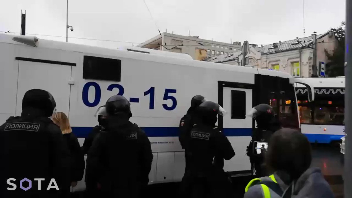 There鈥檚 two videos. In the preceding video, Russian馃嚪馃嚭police are seen arresting a young, blonde woman, around 25, who had attended a anti-mobilization protest